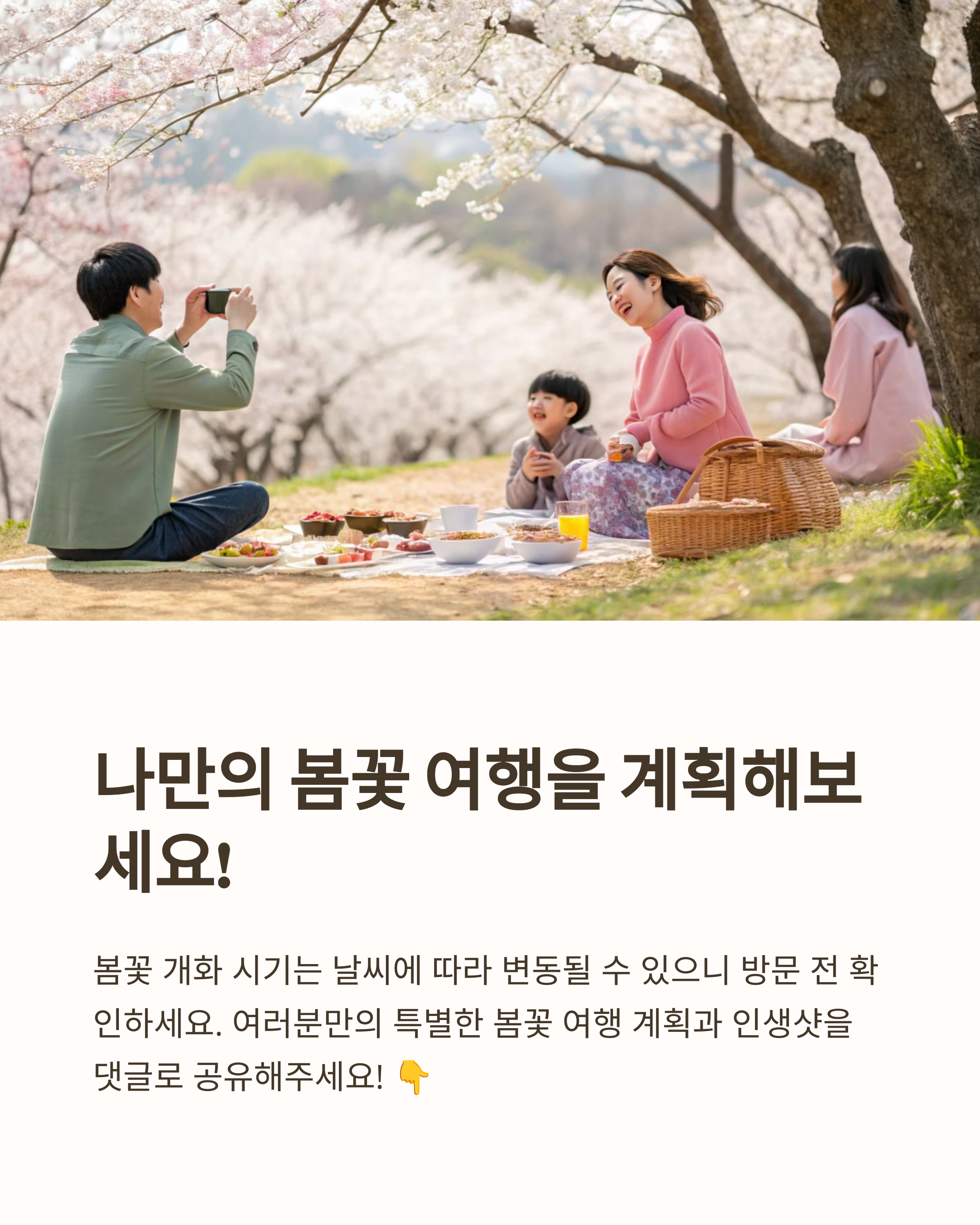여러분이 다녀온 봄꽃 명소는 어디인가요? 댓글로 여러분의 추천 장소도 공유해주세요. 다음엔 그곳도 리스트에 넣어볼게요 😊